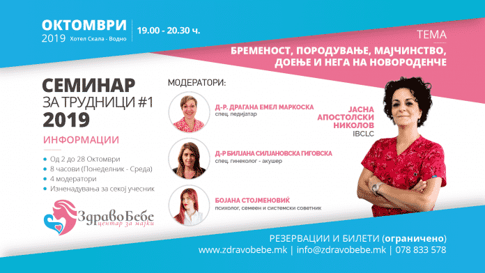 Ве покануваме да присуствувате на престојнииот семинар во кој ви нудиме соодветна подготовка за бременост, доење и мајчинство. Семинарот опфаќа теми кои според долгогодишното искуство на предавачите се многу корисни и од голема помош во бременоста, раѓањето, мајчинството и доењето. Семинарот е во организација на Центарот за мајки “ЗДРАВО БЕБЕ”.
